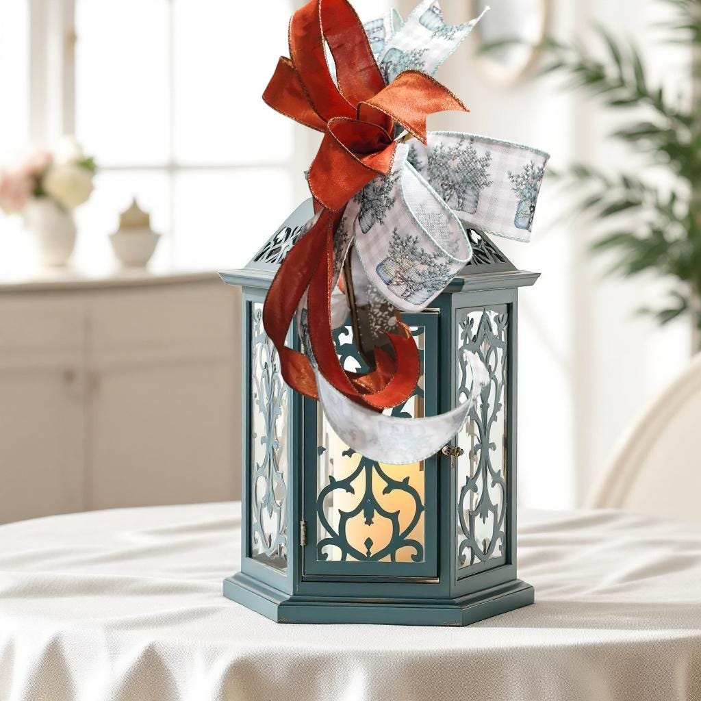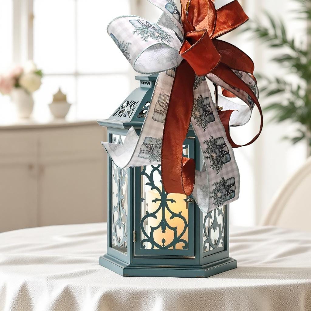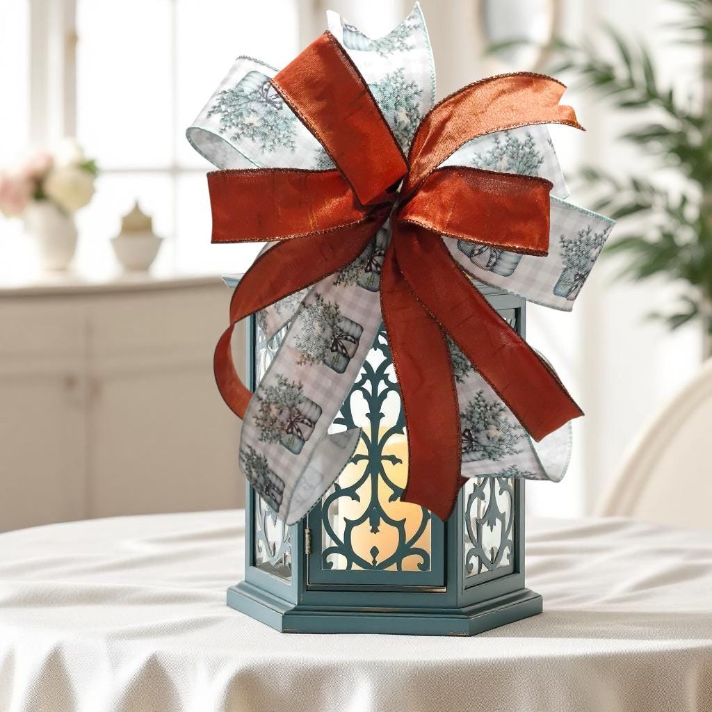 Loving this farmhouse bow with copper shimmer—it’s big, full, and ready for your wreath or lantern! This handmade farmhouse style bow is full of charm and warmth. It measures about 11 inches wide by 16 inches long, making it great for wreaths, lanterns, or even a big gift topper.
